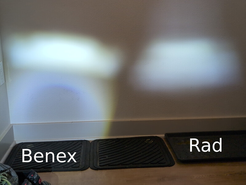 The Benex light output is a big upgrade from the stock RadRunner headlight. The upper cutoff is sharper, the beam center is much brighter, and there is much more downward spill to the road immediately in front of you.