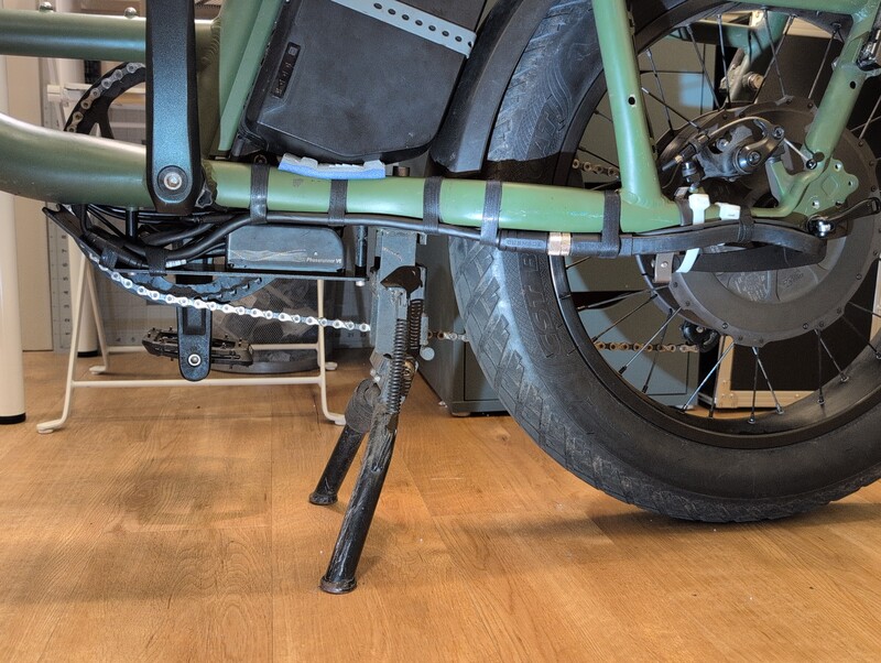 I considered routing the motor and torque sensor cable on the inside of the chainstay, but there isn’t enough clearance between the fat tire and the fat L1019 connector, and the brake rotor might also interfere (if I install one again). I might figure out a guard for area where the cable exits the motor and bends around, as it could snag on something at a public bike rack. But it’s fine for now.
