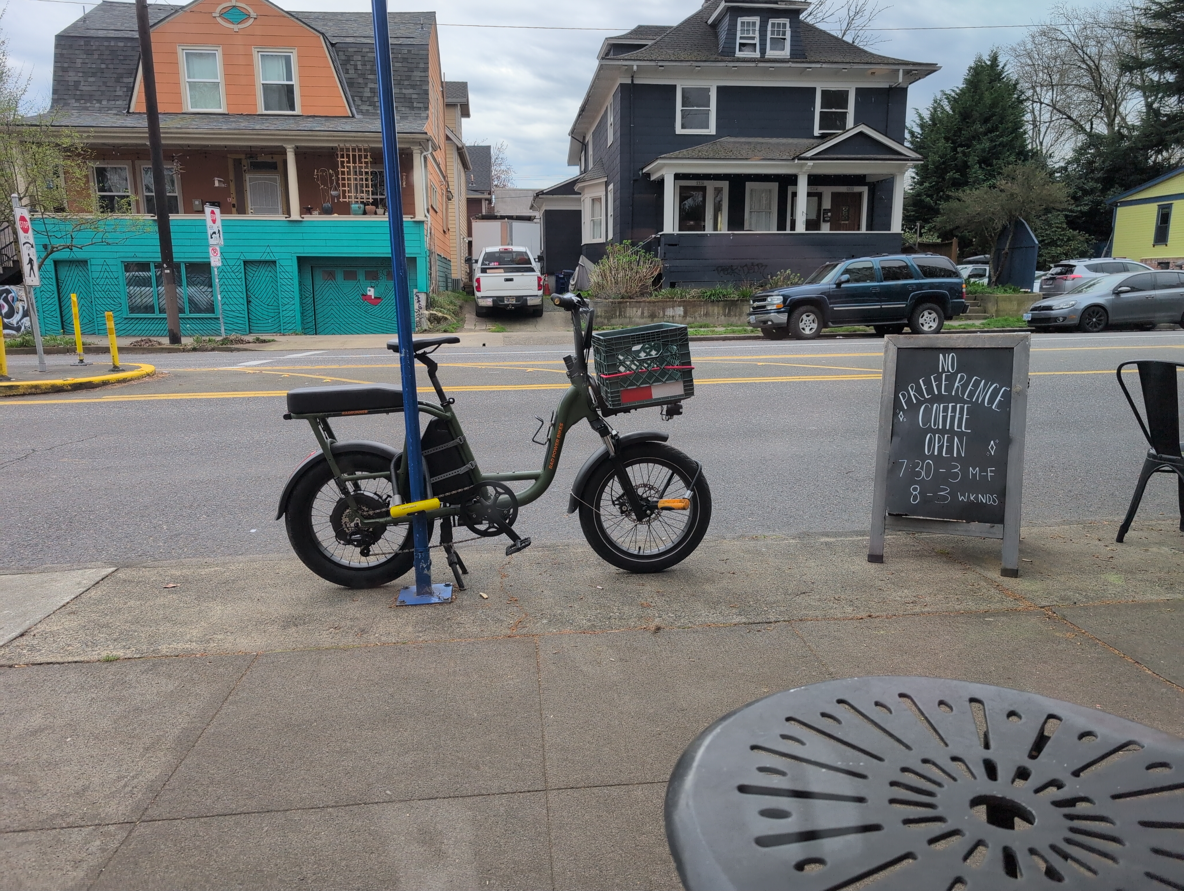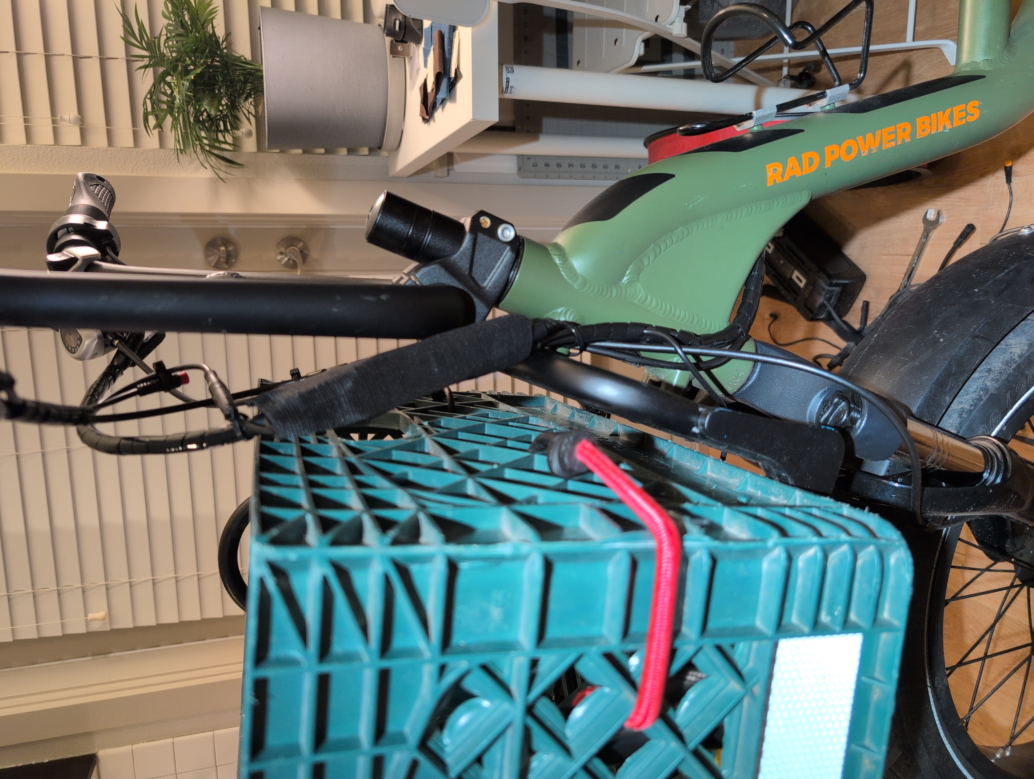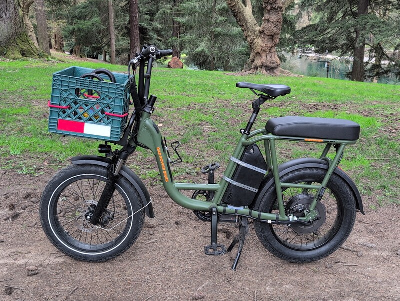I routinely use a bicycle for trips that people cannot conceive of, like picking up my partner from the airport, at night, after it rained all day. (Somehow she is amenable.) This is my life since buying the oldest, most basic model RadRunner from Craigslist. The frame is stout and very capable for its length. It will carry a whole adult passenger on the back plus a load in the front, but it’s a normal-size bicycle for maneuvering and storage purposes. It still works perfectly after three years of hard use, but I decided to upgrade/ruin it with these goals.